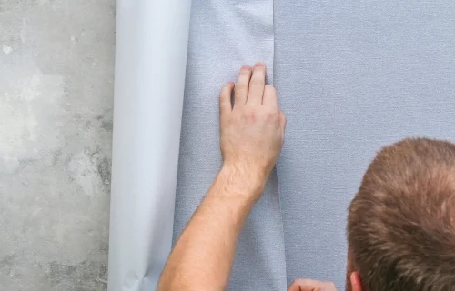 Aplicación de papel decorativo para renovar espacios, añadiendo color, textura y diseño.